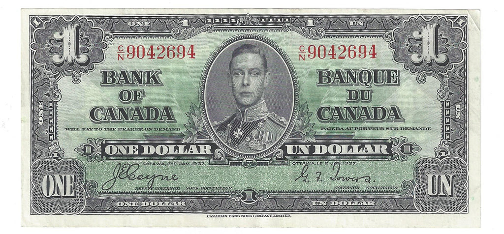1937 Canada $1 Banknote Coyne-Towers, C/N, BC-21d (EF)