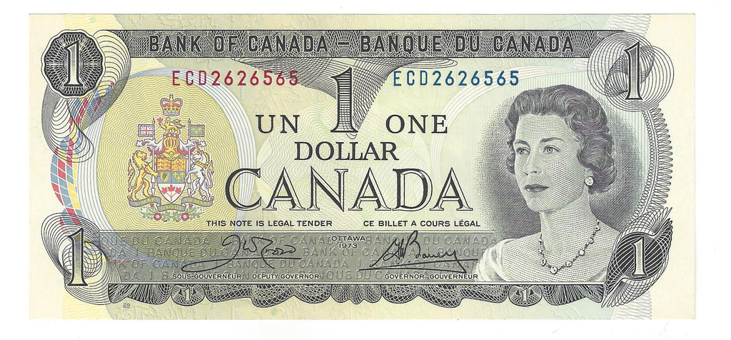 1973 Canada $1 Banknote Crow-Bouey, ECD, BC-46b (UNC)