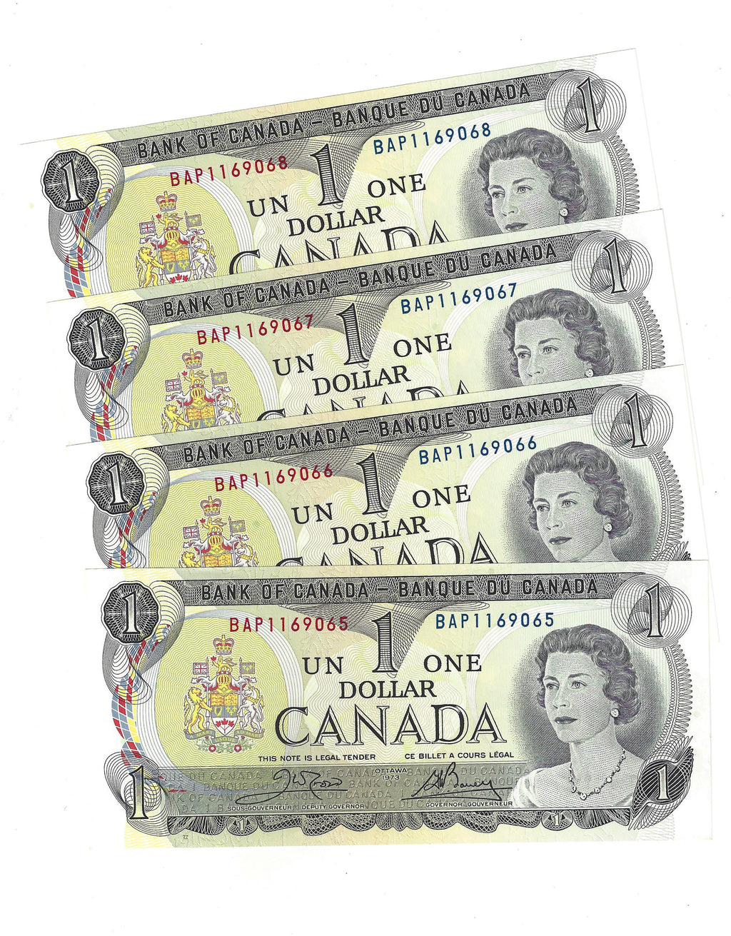 1973 Canada 4 Sequential $1 Banknote Crow-Bouey, BAP, BC-46b (C/UNC)