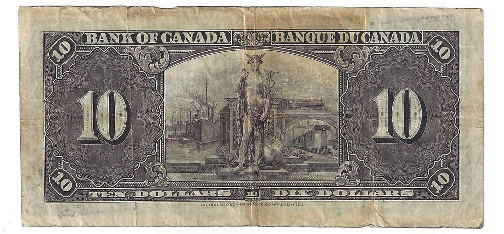 1937 Canada $10 Banknote Gordon-Towers, N/D, BC-24b (VG)