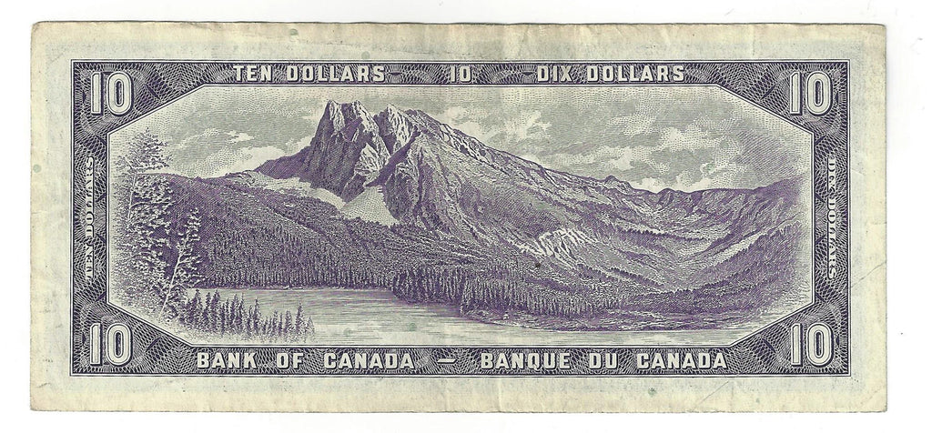 1954 Canada $10 Banknote Beattie-Rasminsky, N/V, BC-40b (VF)