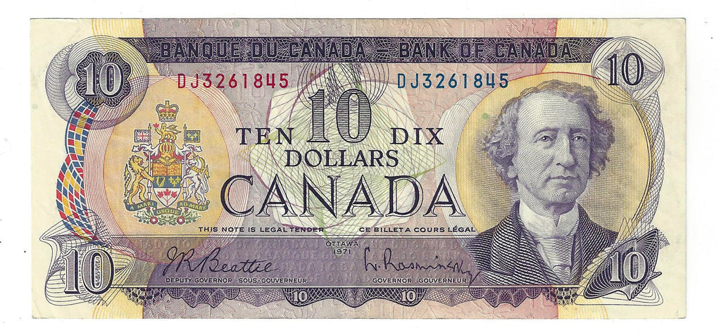 1971 Canada $10 Banknote Beattie-Rasminsky ,DJ, BC-49a (Circ.)