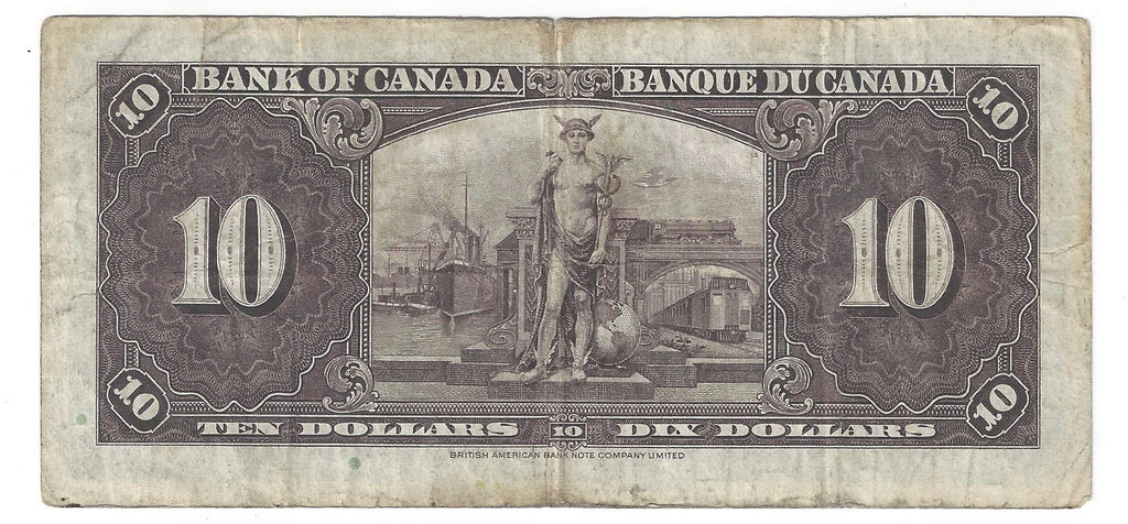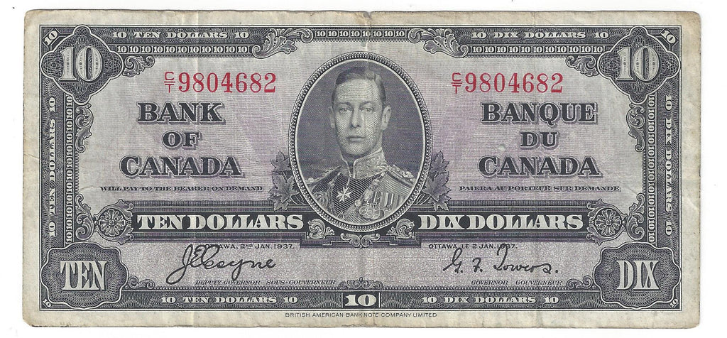 1937 $10 Bank of Canada Note Coyne-Towers Prefix C/T9804682 BC-24c (VG)
