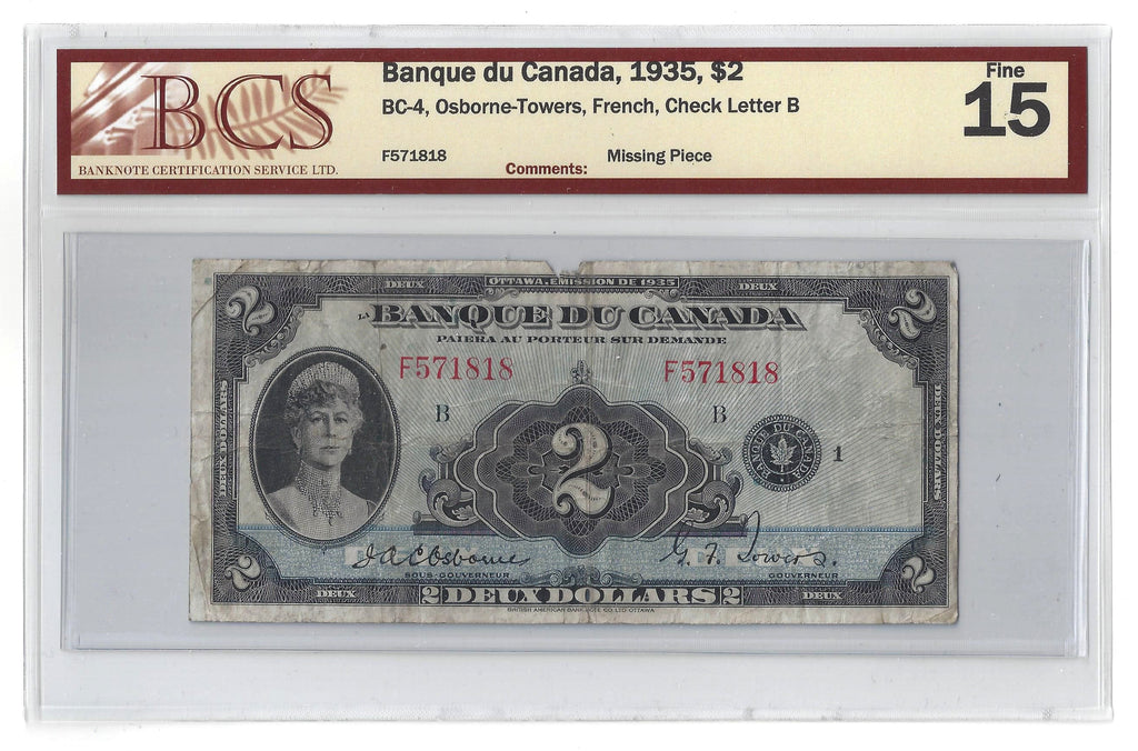 1935 Canada $2 Banknote Osborne-Towers French Text BC-4 BCS F-15