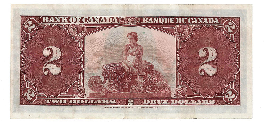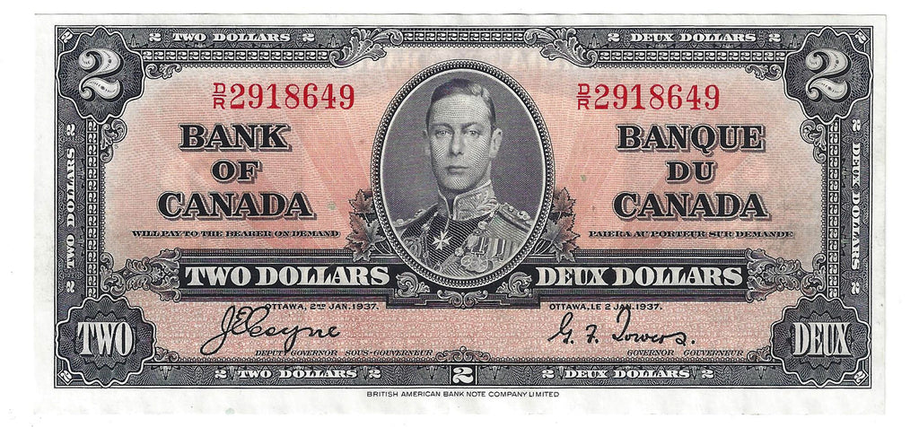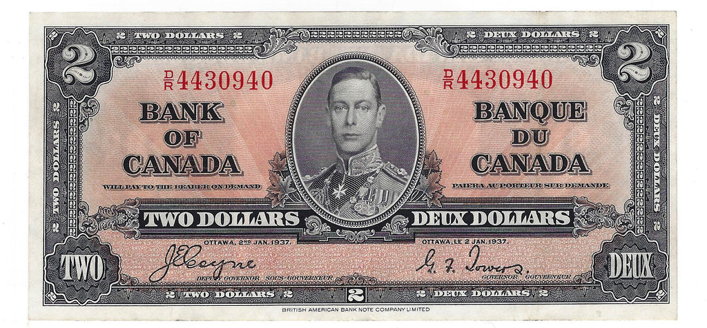 1937 Canada $2 Banknote Coyne-Towers, D/R, BC-22c (EF)