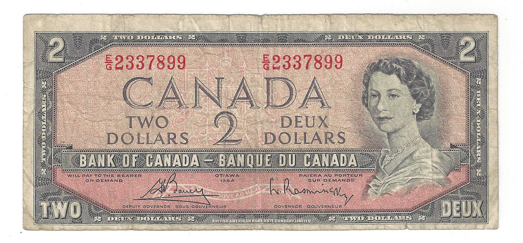 1954 Canada $2 Banknote Bouey-Rasminsky, E/G, BC-38c (Circ.)