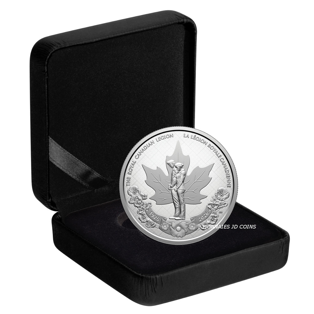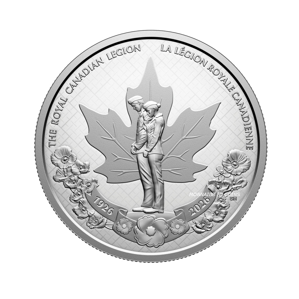 Incorporated in 1926, The Royal Canadian Legion rose from a variety of independent Veterans’ groups formed after the First World War to become a single, steadfast voice for those who served. A century later, 270,000 members carry that sacred mission with solemn pride, serving all Veterans, including serving military and RCMP members and their families, promoting Remembrance, and serving their communities and country. Marking the centenary of The Royal Canadian Legion, the 2026 Fine Silver Proof Dollar pays tribute to Canada’s largest Veteran and community service organization and to a lasting legacy of honouring past sacrifices while inspiring future generations.