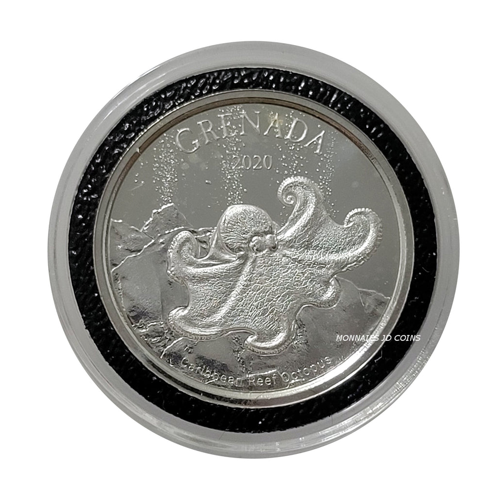 2020 Eastern Caribbean Central Bank Grenada $2 Dollar Octopus 1oz .999 Fine Silver - Coin In Capsule
