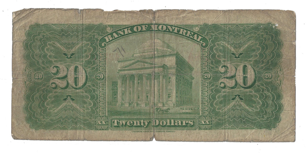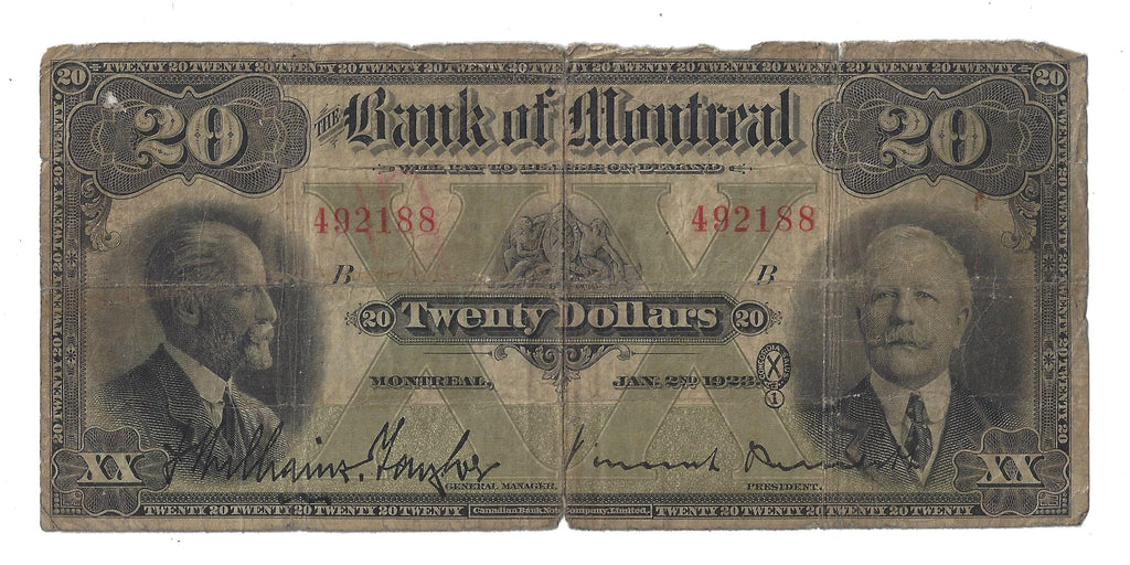 1923 $20 Bank Of Montreal Canada Chartered Note, 492188 Split 505-565-06 (VG)