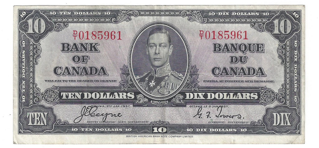 1937 $10 Bank of Canada Note Coyne-Towers,D/T, BC-24c (VF)