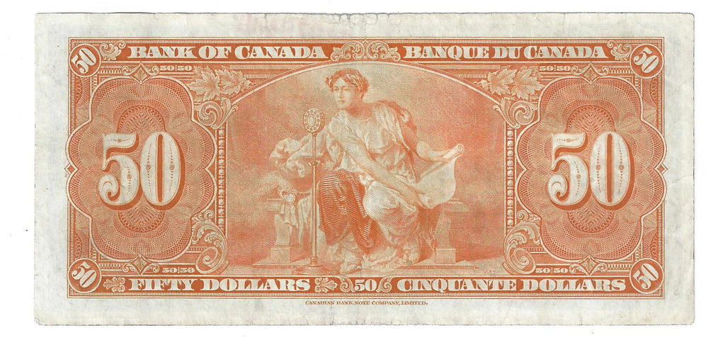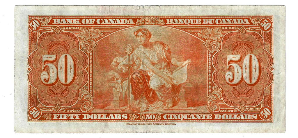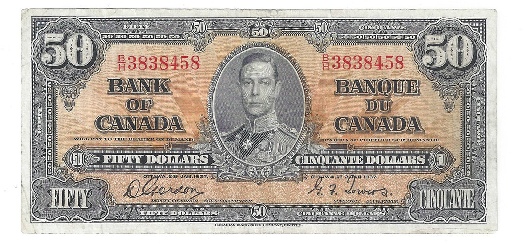 1937 Canada $50 Banknote Gordon-Towers, B/H, BC-26b (VF)