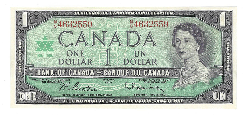 1967 Canada $1 Banknote Beattie-Rasminsky,M/O, BC-45b (C/UNC)