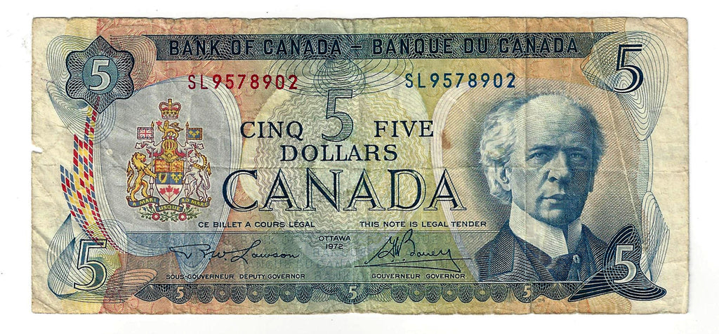 1972 Canada $5 Banknote Lawson-Bouey, S/T, BC-48b (VF/EF)