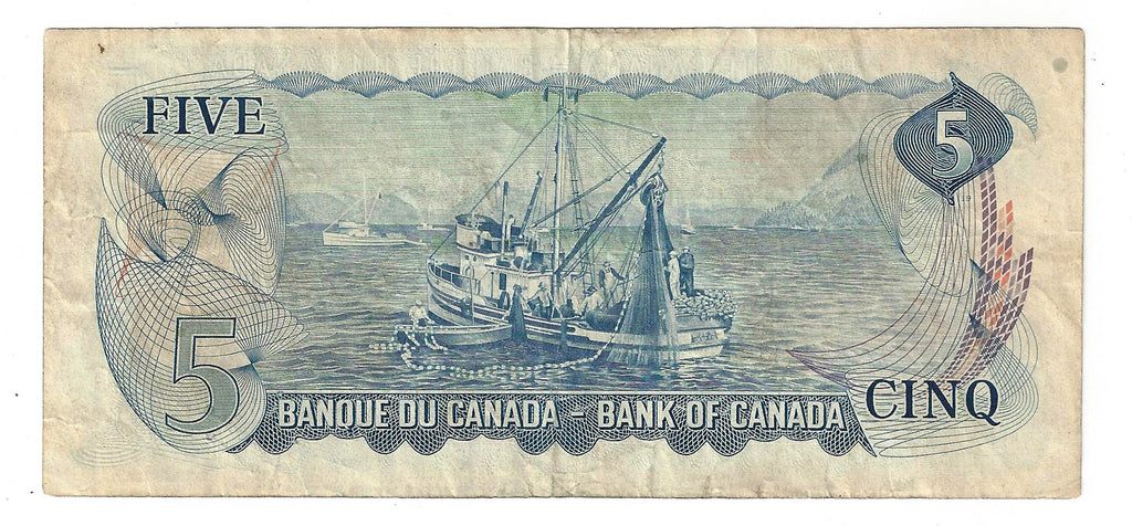 1972 Canada $5 Banknote Lawson-Bouey,X/A, BC-48b (F)