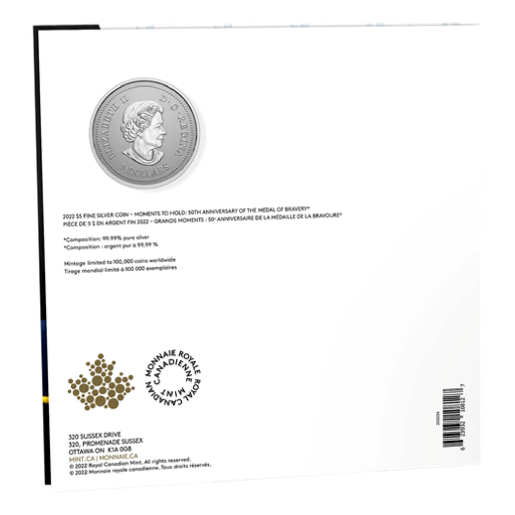 Here's to the heroes among us! The Medal of Bravery recognizes those who have risked injury, even death, to save the lives of others!From bystander interventions in drownings and fiery rescues to saving someone from an animal attack—these are some of the "acts of bravery in hazardous circumstances" recognized by Canada's Medal of Bravery throughout its 50-year history. Those who have been awarded this decoration may not consider themselves as heroes, but their selflessness is one of our great strengths, and worthy of one of Canada's highest honours.Join us in celebrating a half-century of heroism with this Moments to Hold coin that puts 50 years of bravery in the palm of your hand.