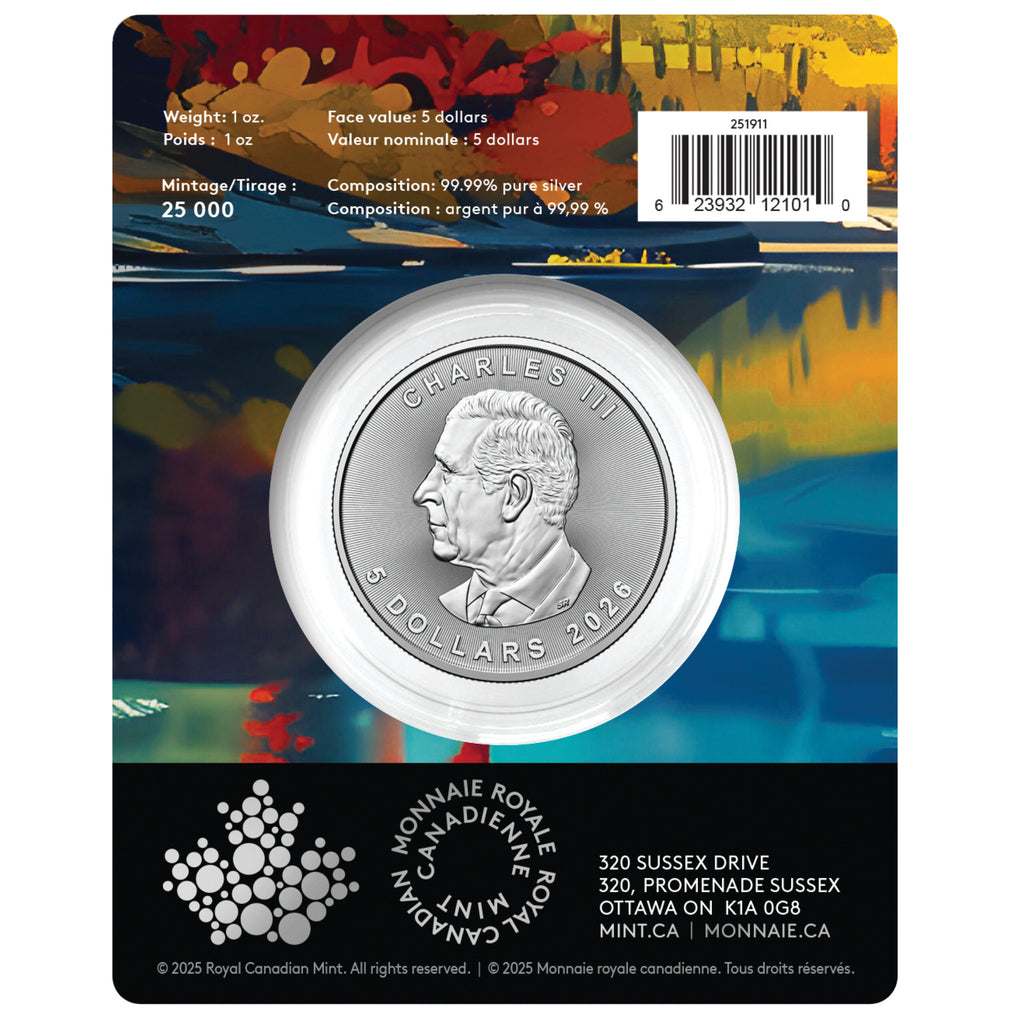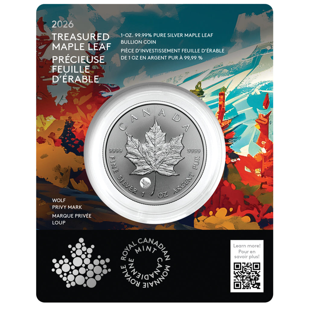 $5 Treasured Silver Maple Leaf: Wolf Privy Mark - 1 oz. 99.99% Pure Silver Coin (Premium Bullion) (No Tax)
