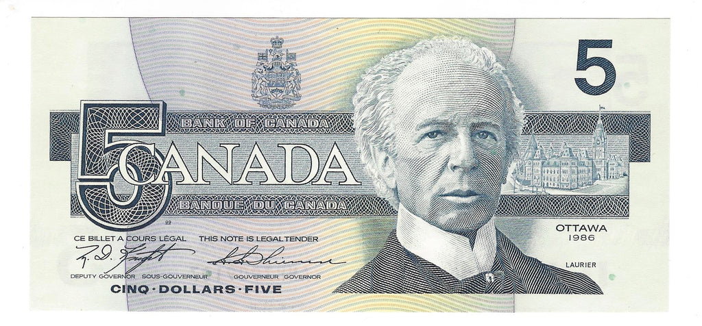 1986 Canada $5 Banknote Knight-Thiessen ,ANH, BC-56d (C/UNC)