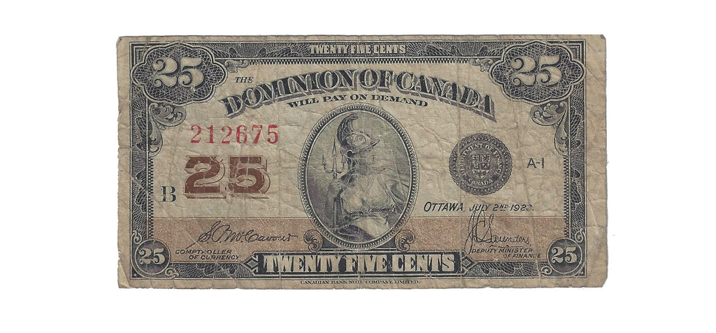1923 Canada 25 Cents Shinplaster Dominion Of Canada McCavour-Saunders, DC-24c (VG)
